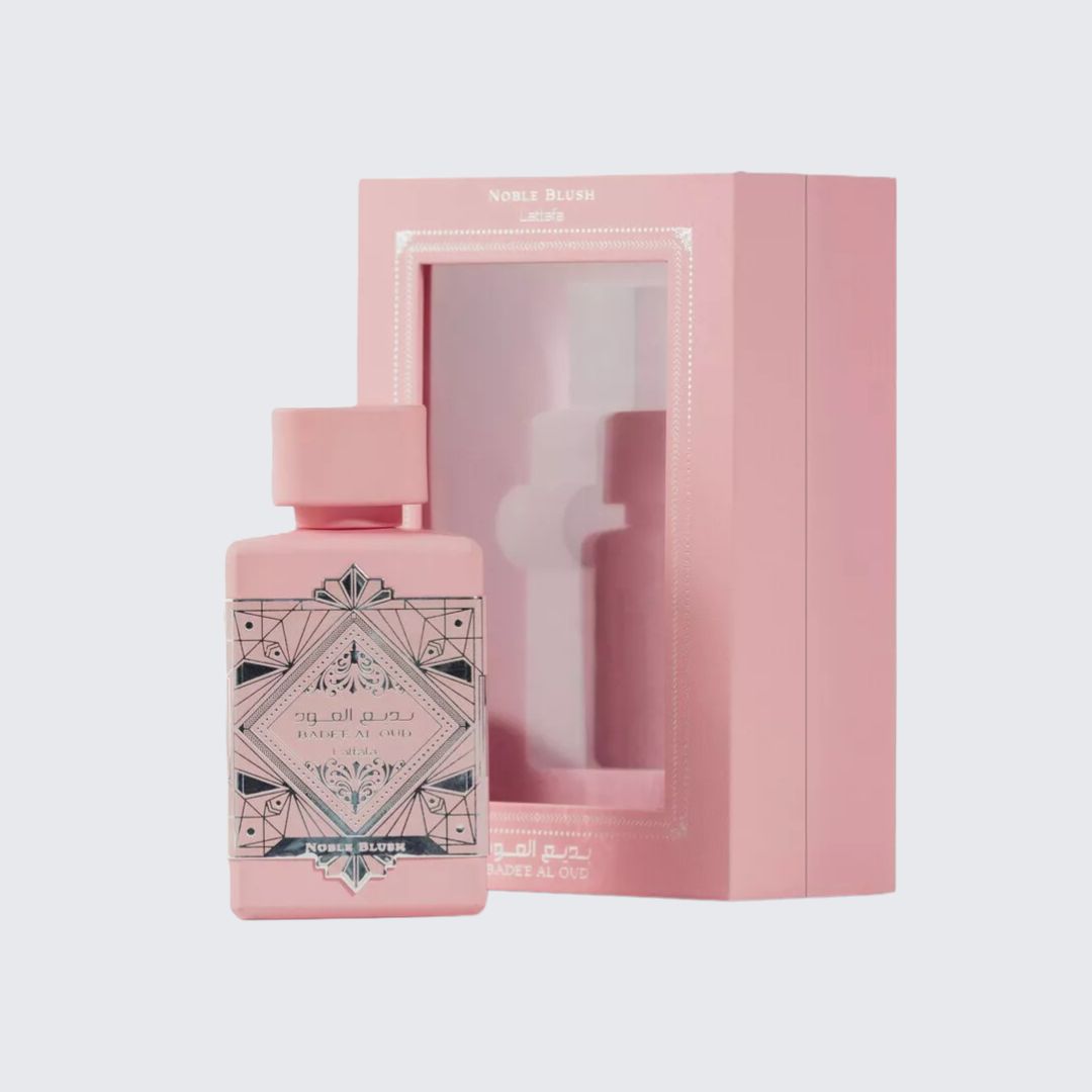 Noble Blush de Lattafa Perfumes es una fragancia de la familia olfativa Floral Frutal Gourmand para Mujeres. Esta fragrancia es nueva. Noble Blush se lanzó en 2024. La Nota de Salida es Rose Milk; las Notas de Corazón son merengue y almendra; las Notas de Fondo son vainilla, almizcle y sándalo.
